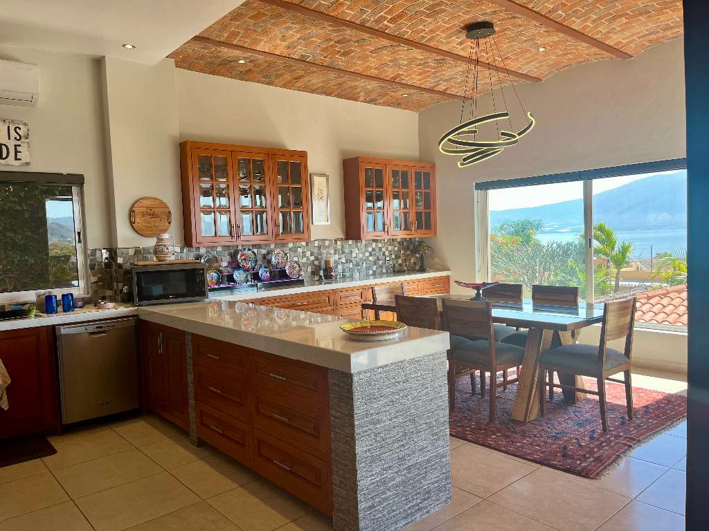 The designer kitchen boasts high end appliances and a generous seating area with exceptional Lake Views.