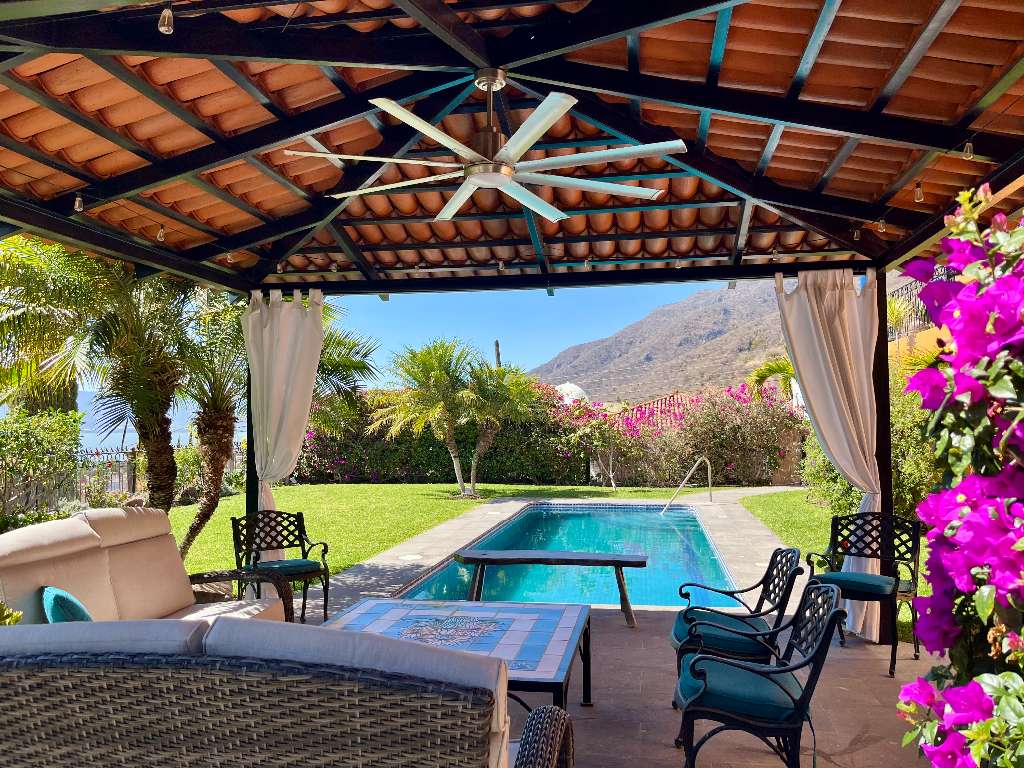 The garden area offers privacy in a beautiful oasis setting with solar heated pool and a newly constructed Cabana.