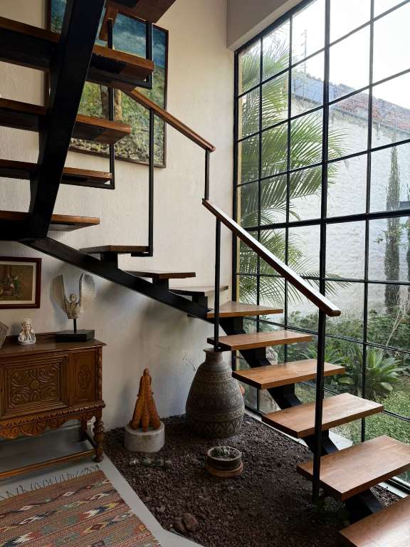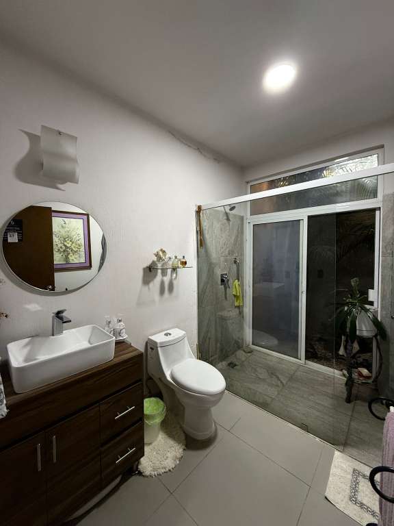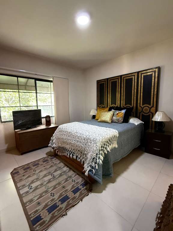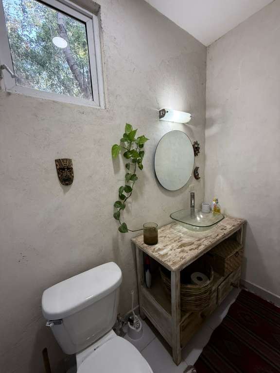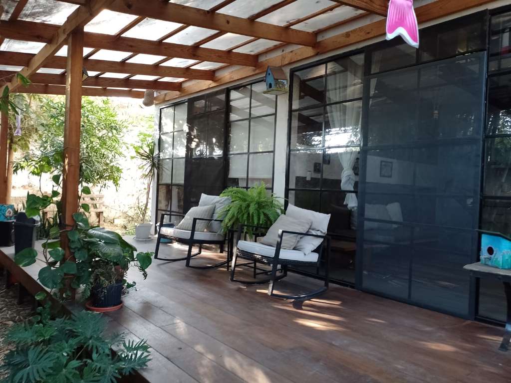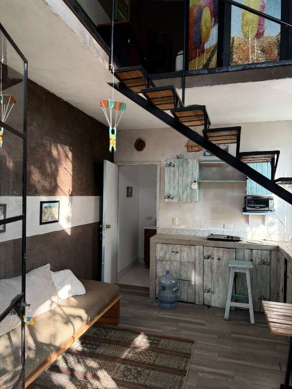 The main house is modern style, in the ground floor we can find 1 bedroom with full bathroom, living room, kitchen and dining room in a single space offering comfort and functionality. And in the upper level is the second bedroom and a functional space that can works as a TV room or office.