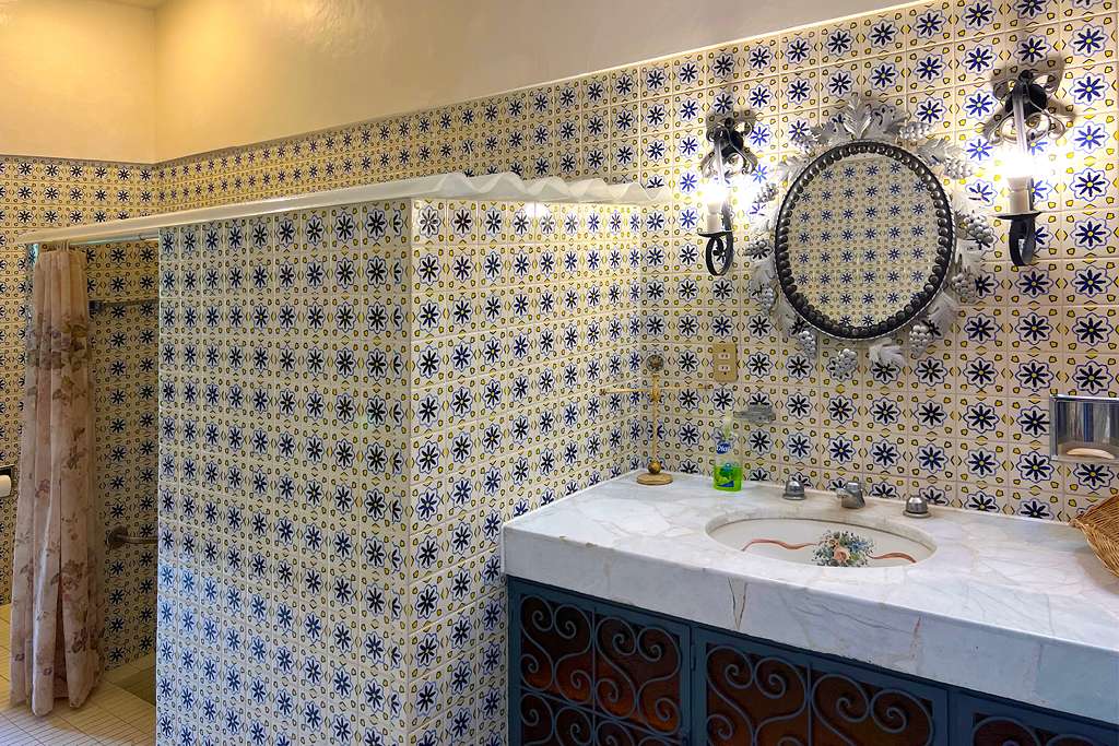 There are two master suites located in every wing of the house, both with en-suite bathrooms. One of the bedrooms has a separate walk-in closet and private office space. In between are all the common areas of the house, the living room that connects to a separate library/studio, the dinning room that leads to the spacious separate kitchen.