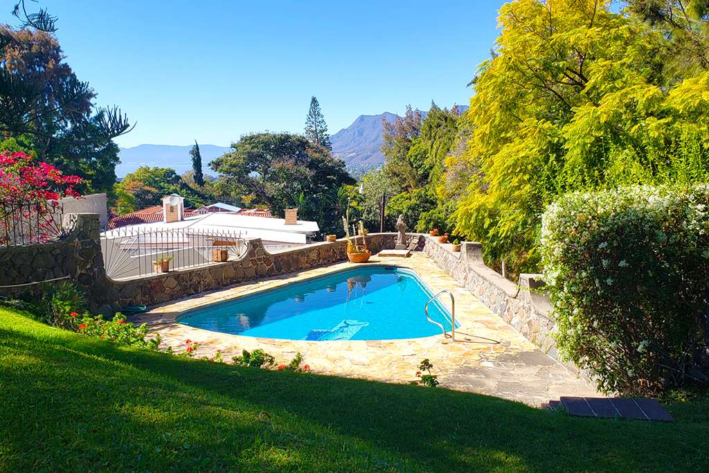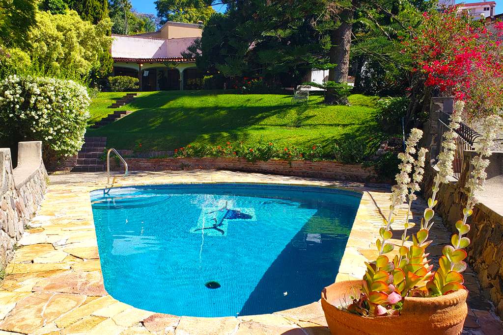 All the areas of the house are connected from the exterior with a very large covered terrace that really is the “king" of the house, that gives the real inside-outside living, overlooking the large mature yard that is laid out in three different platforms that end in a triangle shaped swimming pool.