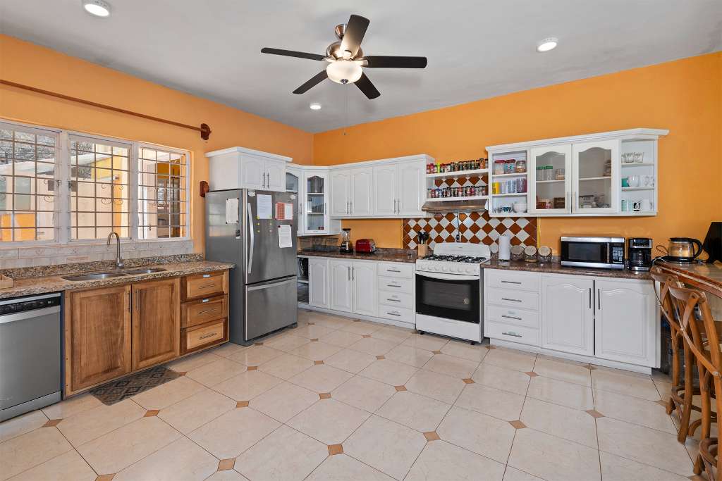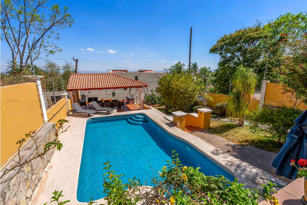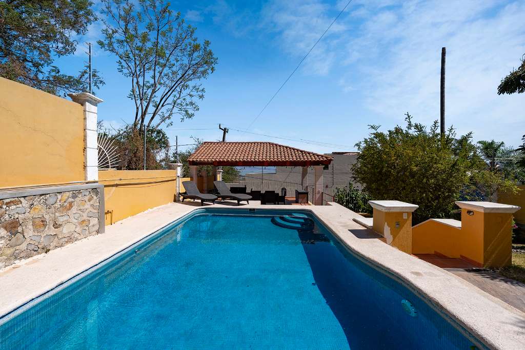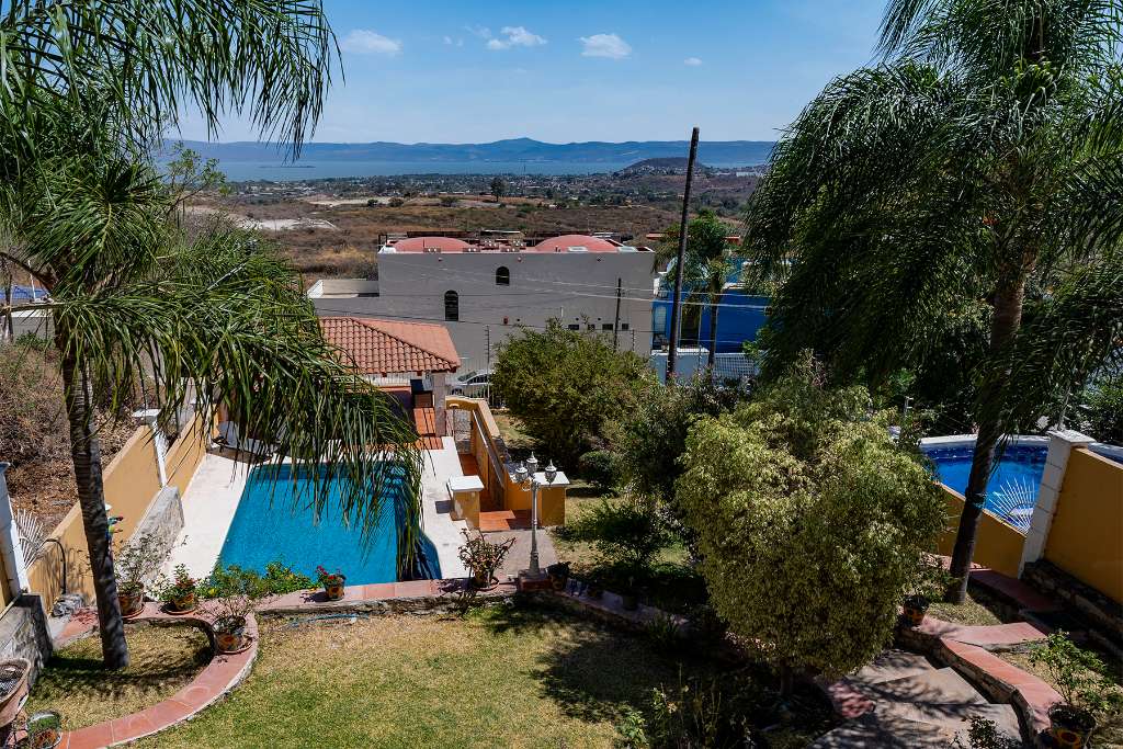 This house is located in Chapala Haciendas a very quiet place near Chapala, the house has four bedrooms and two bathrooms, on the ground floor has a large kitchen with very large bar, with six burner stove, hood, dishwasher and refrigerator in stainless steel, the very spacious room and high ceilings overlooking the Lake as well as the dining room, the ground floor has a bedroom with closet, a half bathroom with a very nice outdoor shower; as well as a laundry room, at the back of the house there is a spacious garden in its surroundings only nature and peace.