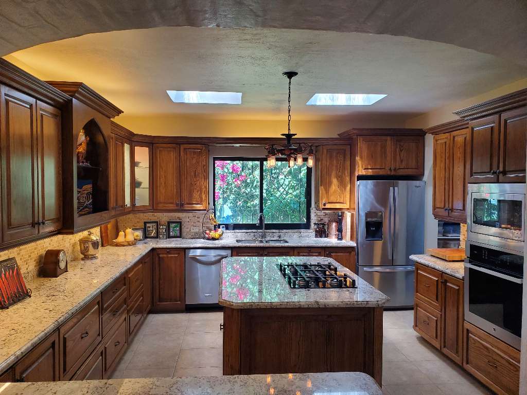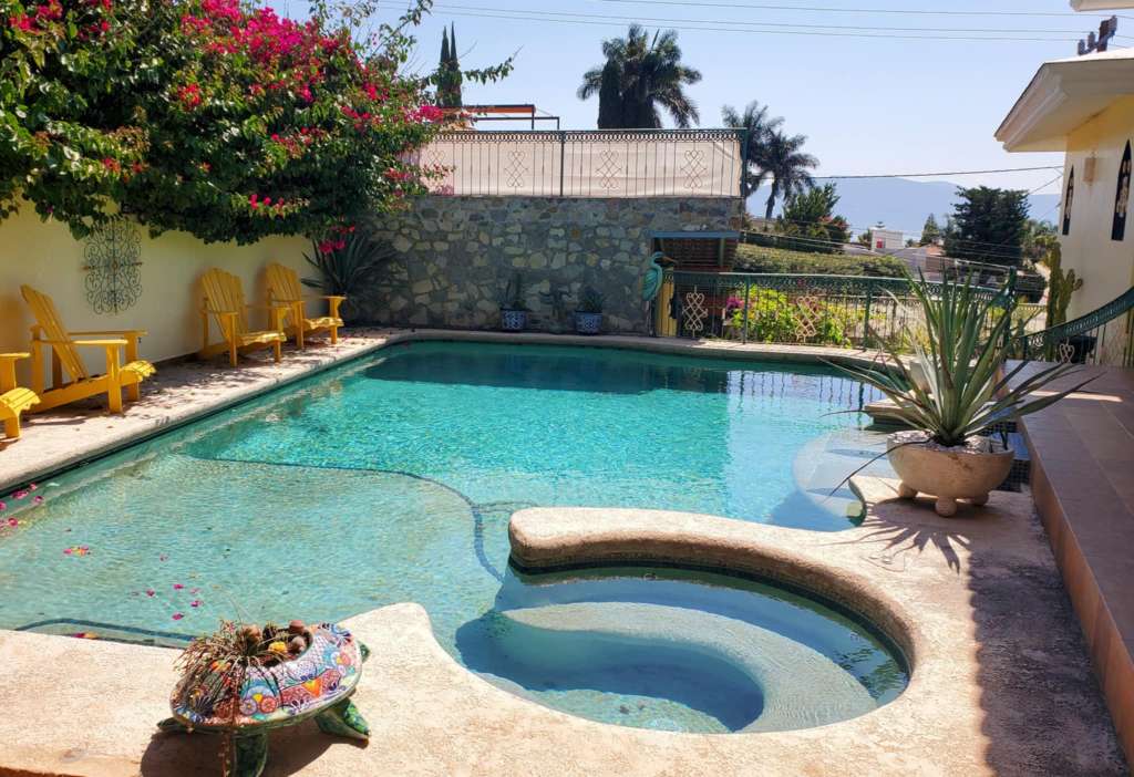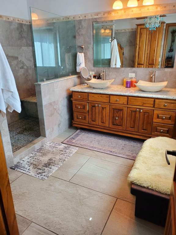 Oak cabinets, doors, and built-ins; granite or marble tops, top notch electrical, multiple solar panels, mega surge protectors, neat and clean pool and house water functions, and custom architecture. The list could go on for days. Instead….come and visualize your life in Mexico in this established and secure setting! Call or write for a private showing.