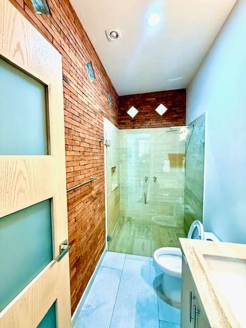 Features 2 spacious bedrooms with closets made of American oak. Also includes 2 full bathrooms, well-lit and with ample space.