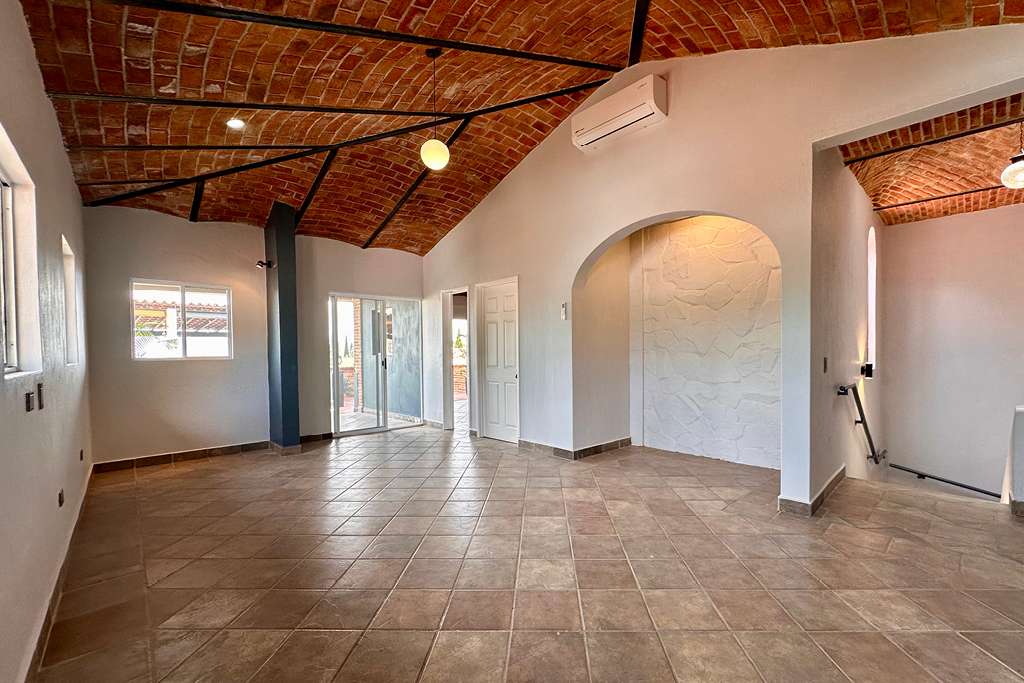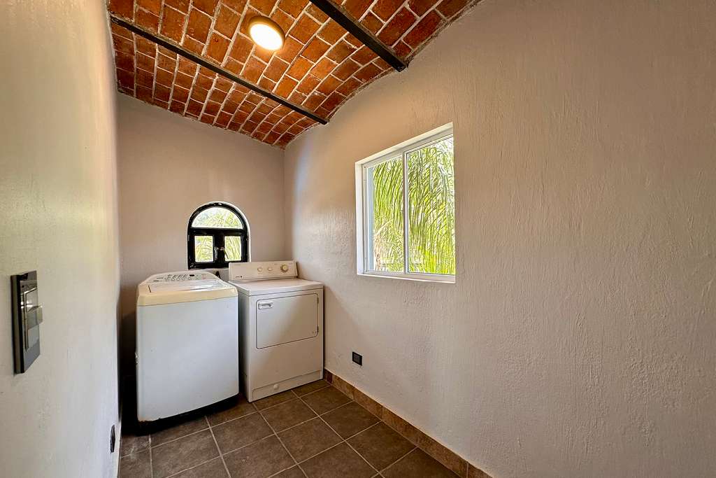 The two main bedrooms and inside entertainment areas with A/C minisplit units. The whole house is solar powered. The laundry room is in the second level. There is a side walkway to the back terrace.