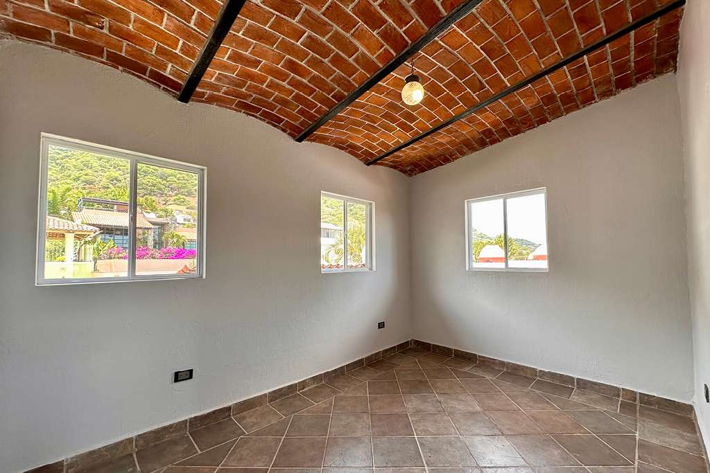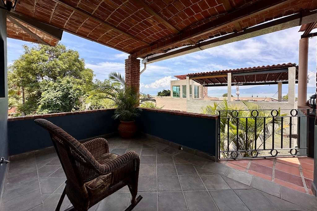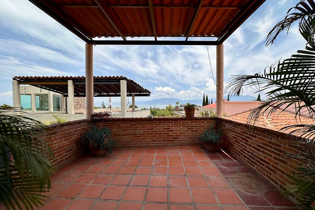 There is also a bedroom with separate covered terrace, walking closet and full bathroom. A staircase with cupula, wide enough and handrails bring us to the second level where a very ample area that can be used same as an office and TV room, that is in between the two bedrooms, one of them to the north with a Mountain View and the other one to the south with a beautiful lake view, private covered terrace and a full bathroom shared by both bedrooms.