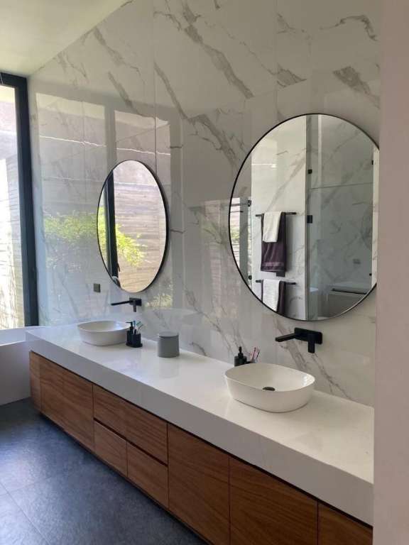 The double-height ceilings provide a feeling of spaciousness, luxury, and contemporary aesthetics, accompanied by generous spaces designed for living and enjoying every corner.