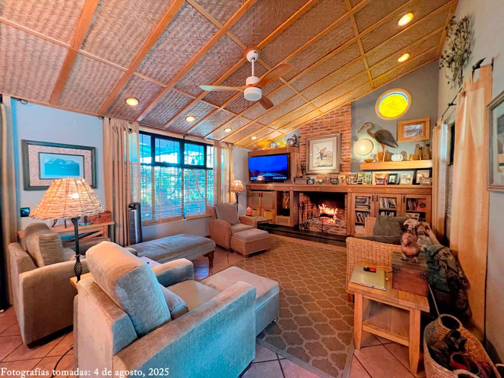 Inside, the seller (a master carpenter) has meticulously crafted exquisite woodwork throughout, including the spacious kitchen, entertainment center, closets, headboards, dining room table, etc., infusing the indoor spaces with natural artisanal charm. This home is also equipped with a reverse osmosis water filtration system for clean, safe drinking water, a spacious kitchen for culinary creativity, a wood burning gas fireplace and the master bedroom opens to the patio and garden, offering picturesque views and a tranquil ambiance.