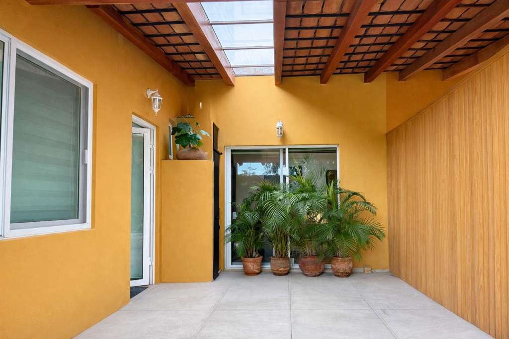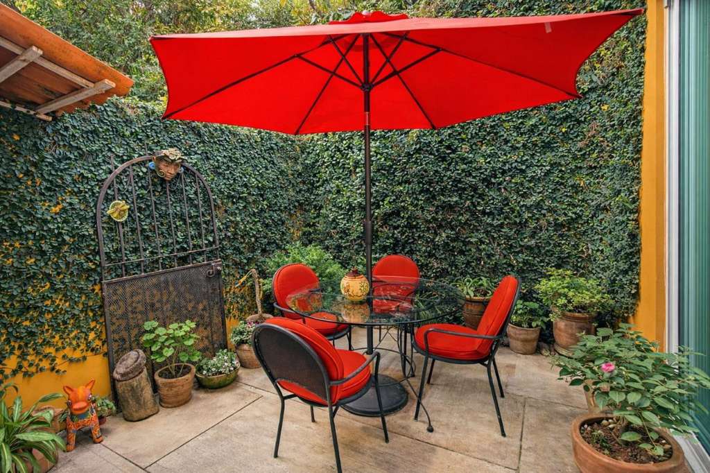 The delightful outdoor space along with skylights, sliding glass doors and lots of windows fill the home with beautiful natural light.