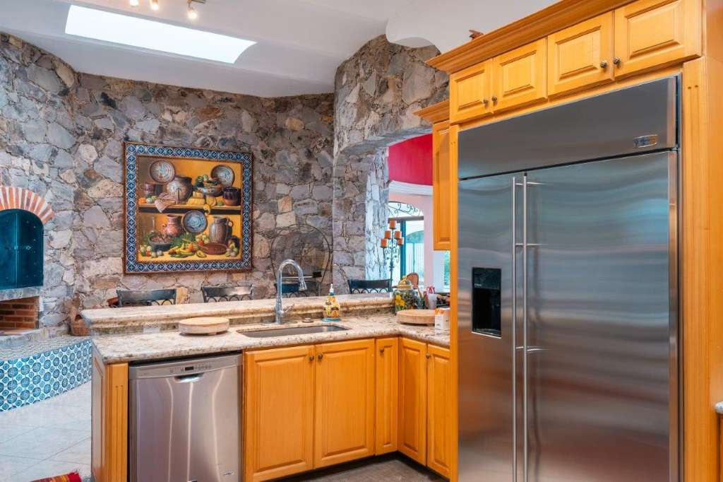 But it does not stop there. This gated estate is fully landscaped. A motor court, with generous front yard, leads to a beautiful glass foyer entrance. Immediately to right is the formal living room with high ceiling and boasting appointments of the 2007 remodel. The formal dining room is architecturally positioned under a very large Cupola to provide maximum views. The stainless steel kitchen is fully equipped, complete with pizza oven and has custom cabinetry as found throughout the home.
