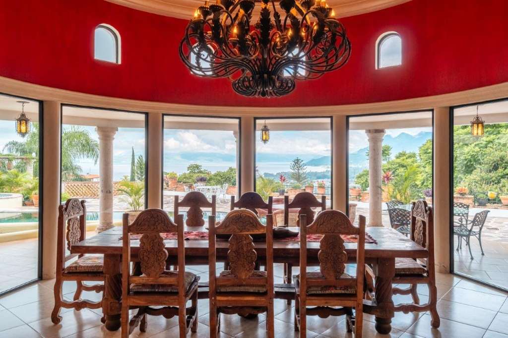 Beautiful Mexican architecture, 4 generous bedroom suites, a large family room, and a cantina, open to spa and pool. The entire home is built around the natural views from the top of Chula Vista. The Master bedroom wing is something to marvel at with its size, amenities and detail. Only the large adjacent office and art studio, which is positioned on a second level, was built for natural light and magnificent Lake views.
