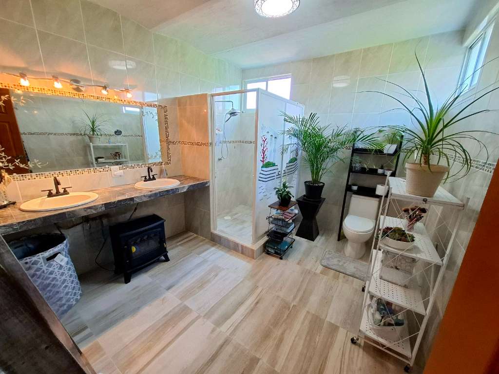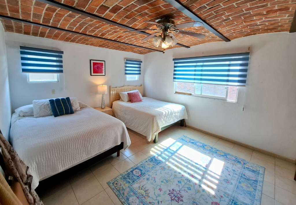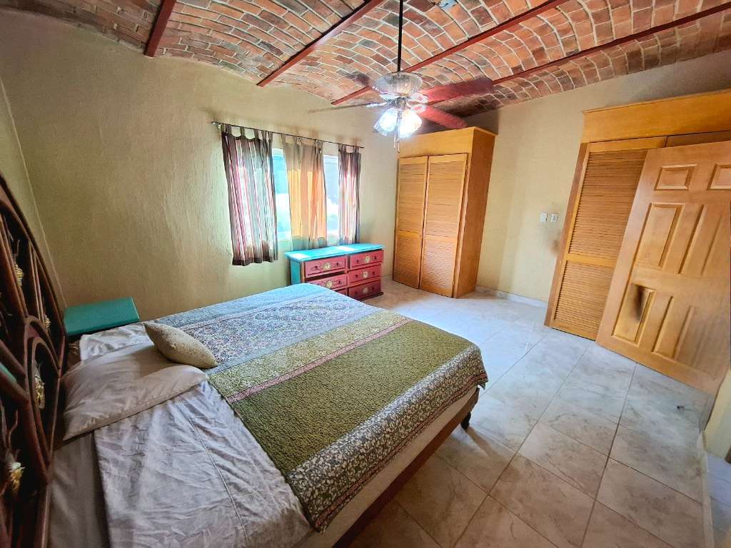 This home is spacious, with beautiful brick boveda ceilings throughout. Each of the 4 bedrooms is oversized, and each can easily accommodate a king sized bed (or even 2 queen beds) The living area opens onto a large covered patio, and overlooks the large garden area.