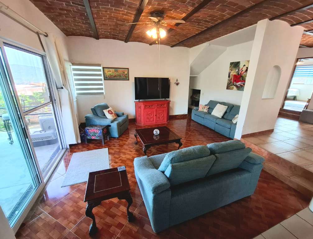 Perched in the highest part of Agua Escondida, this home not only boasts a beautiful mountain view, and view of the village of Ixtlahuacan in the valley below, but also a view of Lake Chapala.