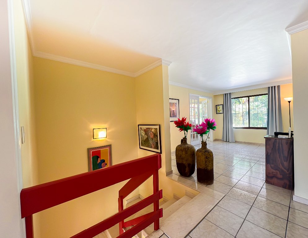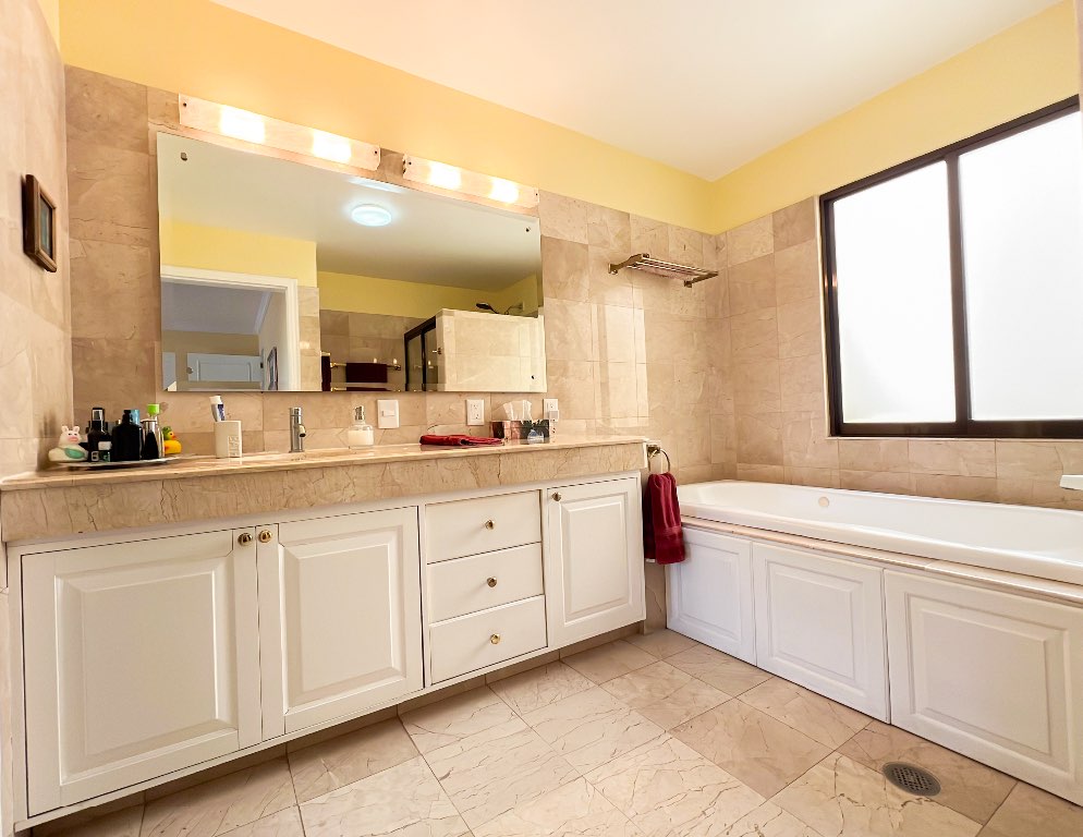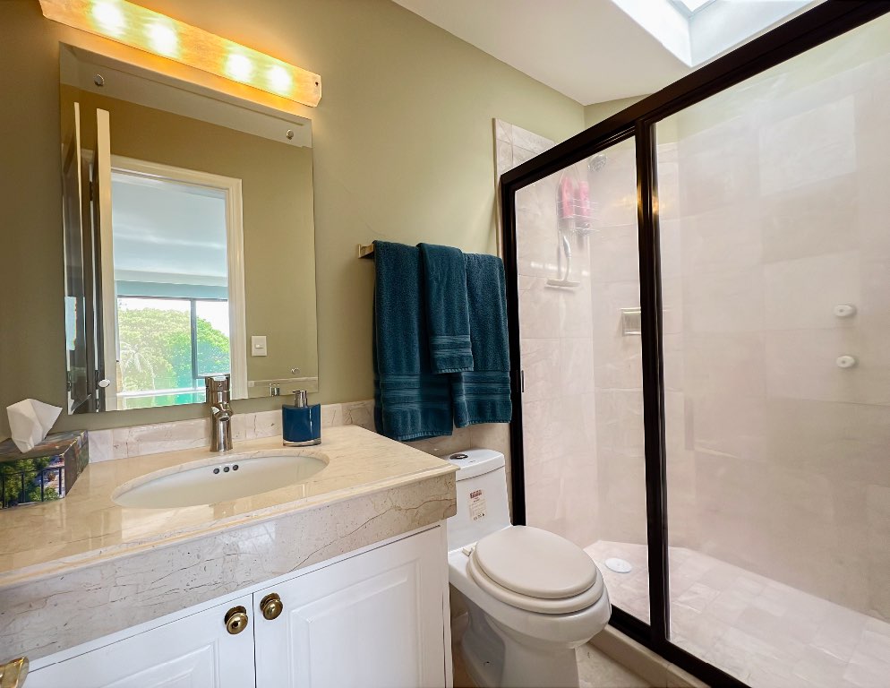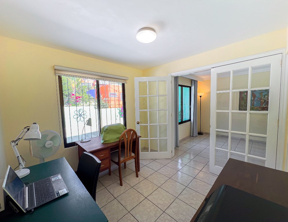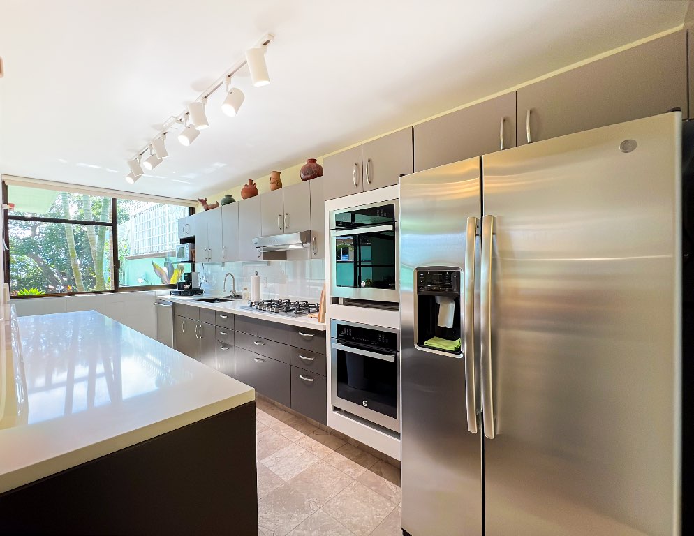 The main level has a large flex room that is currently being used as an office/TV room. This could easily become a main level bedroom if needed. The sleek Galley kitchen is extremely efficient for two people to work in. Having Three bedrooms upstairs each with their own full bathroom offers lots of space for extended guests without getting in each other’s way.